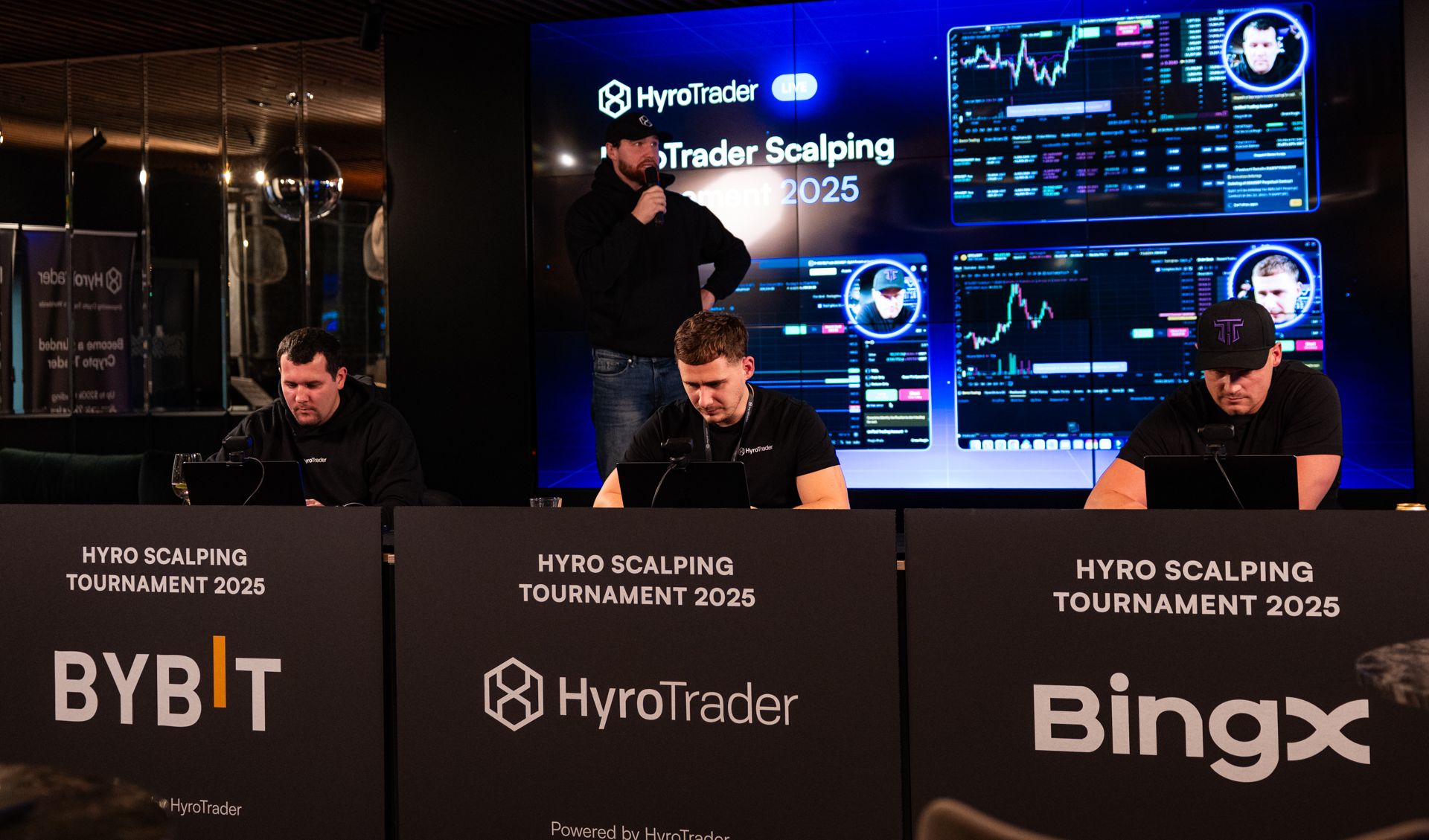 9 traders competed in a high-speed live scalping tournament at HyroTrader HQ Prague, trading under real-time market conditions.