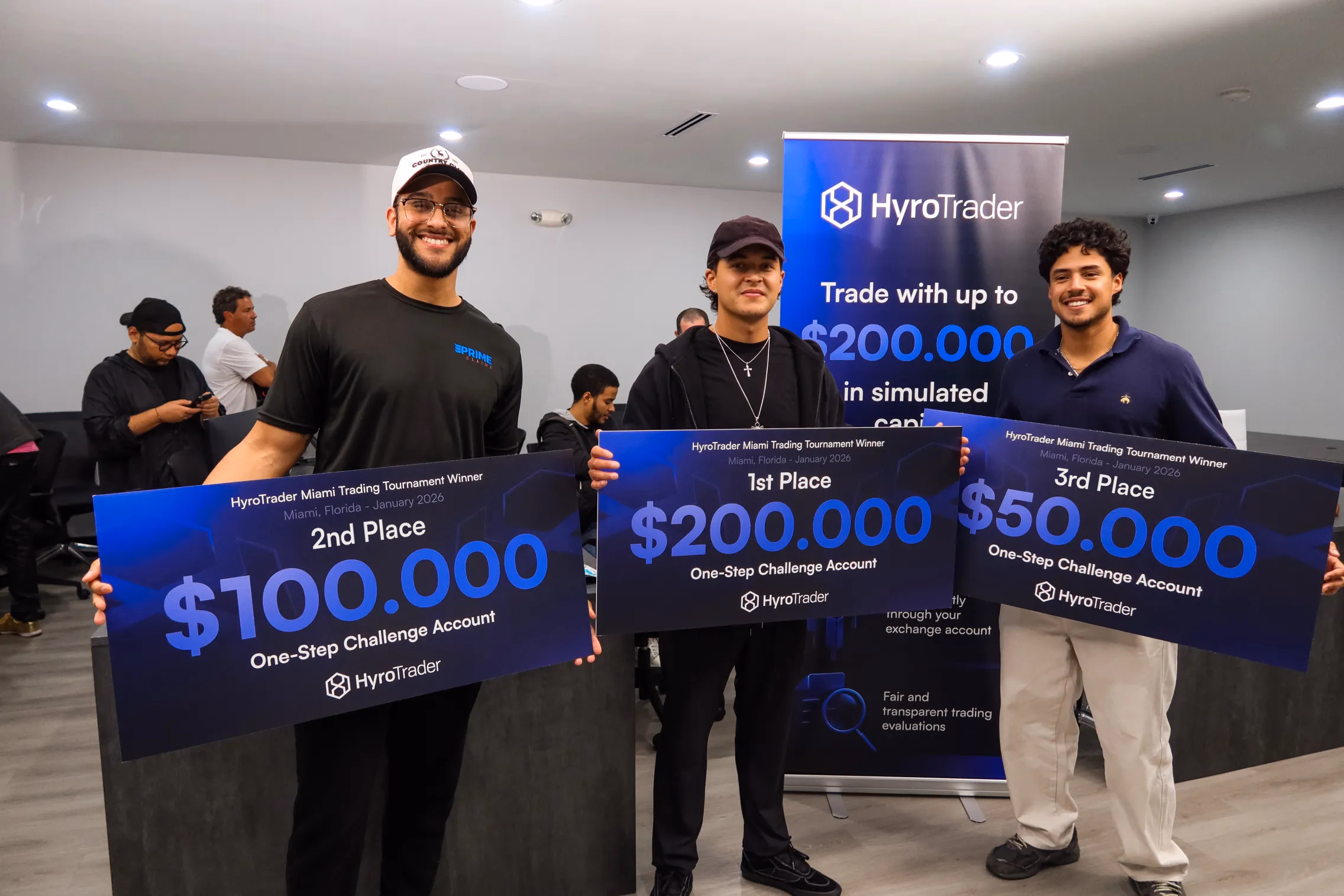 15+ traders competed live in Miami for $350,000+ in funded trading accounts under real market conditions.