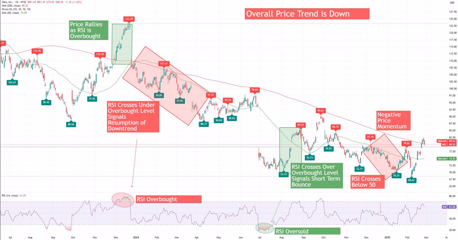 What it is: A momentum oscillator. Weekly or monthly RSI helps identify extended conditions.