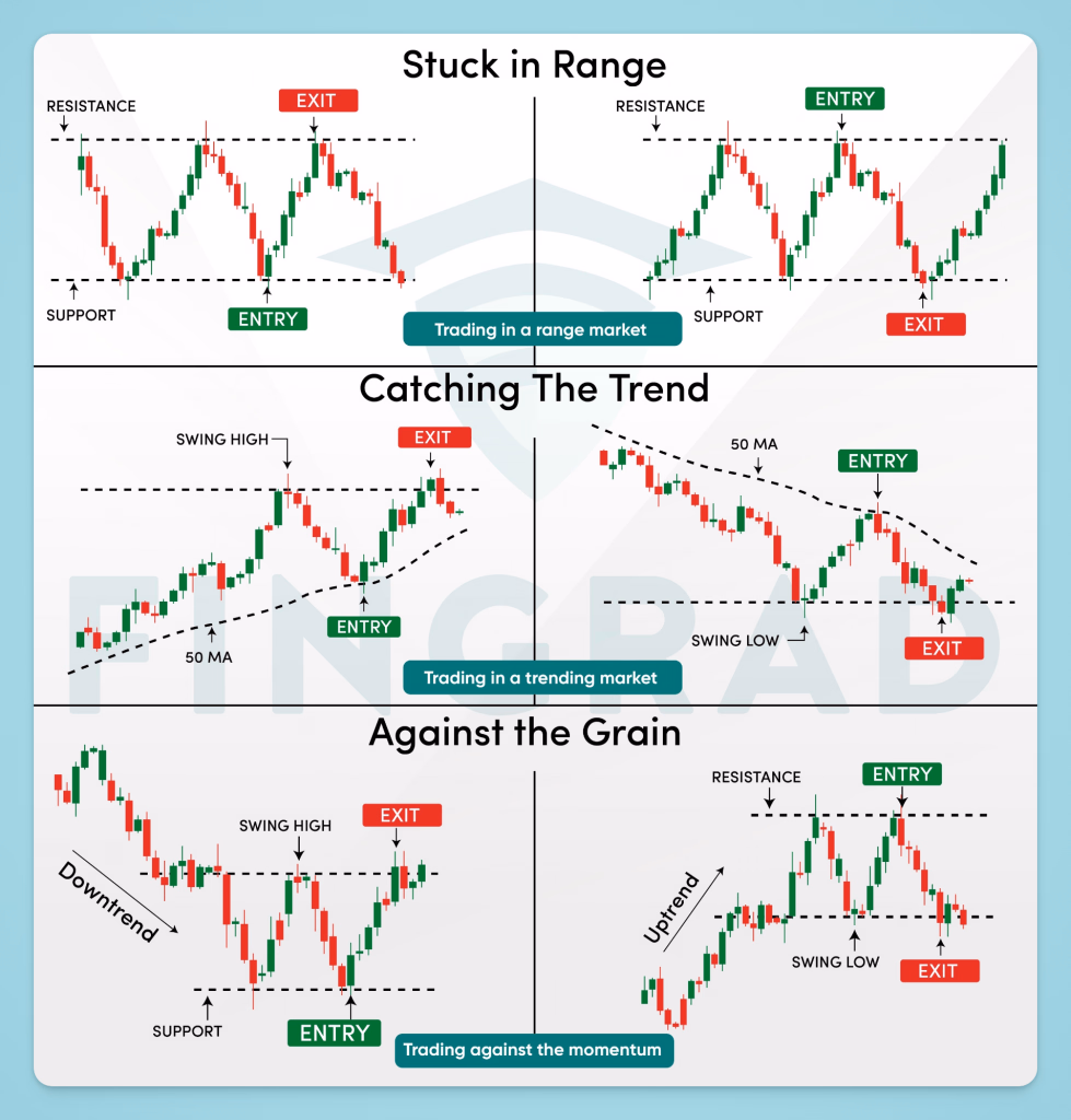Every swing trader has their go-to setups, but in crypto, it pays to diversify your strategy toolkit. Below, we break down several battle-tested swing trading strategies adapted for the crypto arena. You might find that some trades call for trend following, while others favor a counter-trend approach – the key is to apply the right method for the market condition at hand. Let’s examine a few core strategies and how to execute them effectively in cryptocurrency markets.