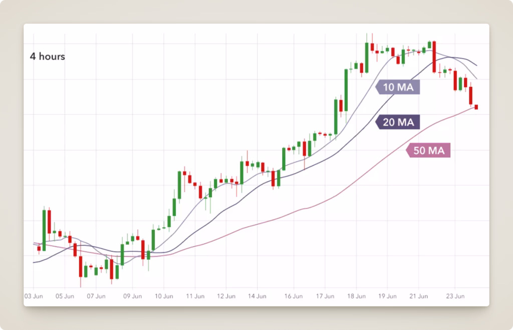 Moving Averages (MA): A moving average smooths out price data by calculating the average price over a set period (e.g. 50 days). Plotting a simple moving average (SMA) or exponential moving average (EMA) on your chart can help you see the underlying trend.