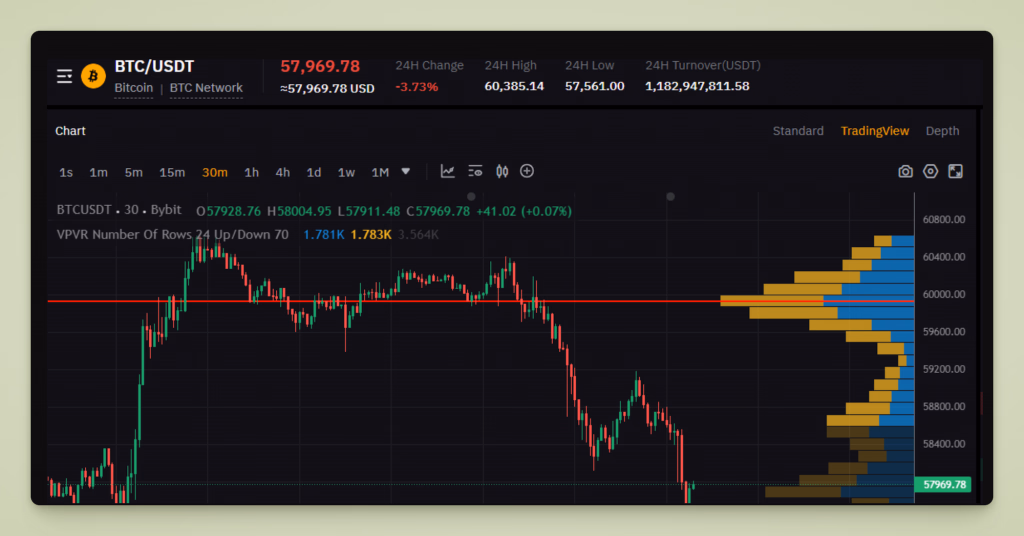 Another powerful tool, especially favored by advanced crypto traders, is Volume Profile. Unlike standard volume bars that show volume over time, Volume Profile shows volume at price levels. It’s often plotted horizontally on the chart (usually on the side), indicating how much volume was traded at each price level over a given period. On some platforms, you’ll see this referred to as VPVR (Volume Profile Visible Range), which adjusts the profile to the portion of the chart you’re viewing.