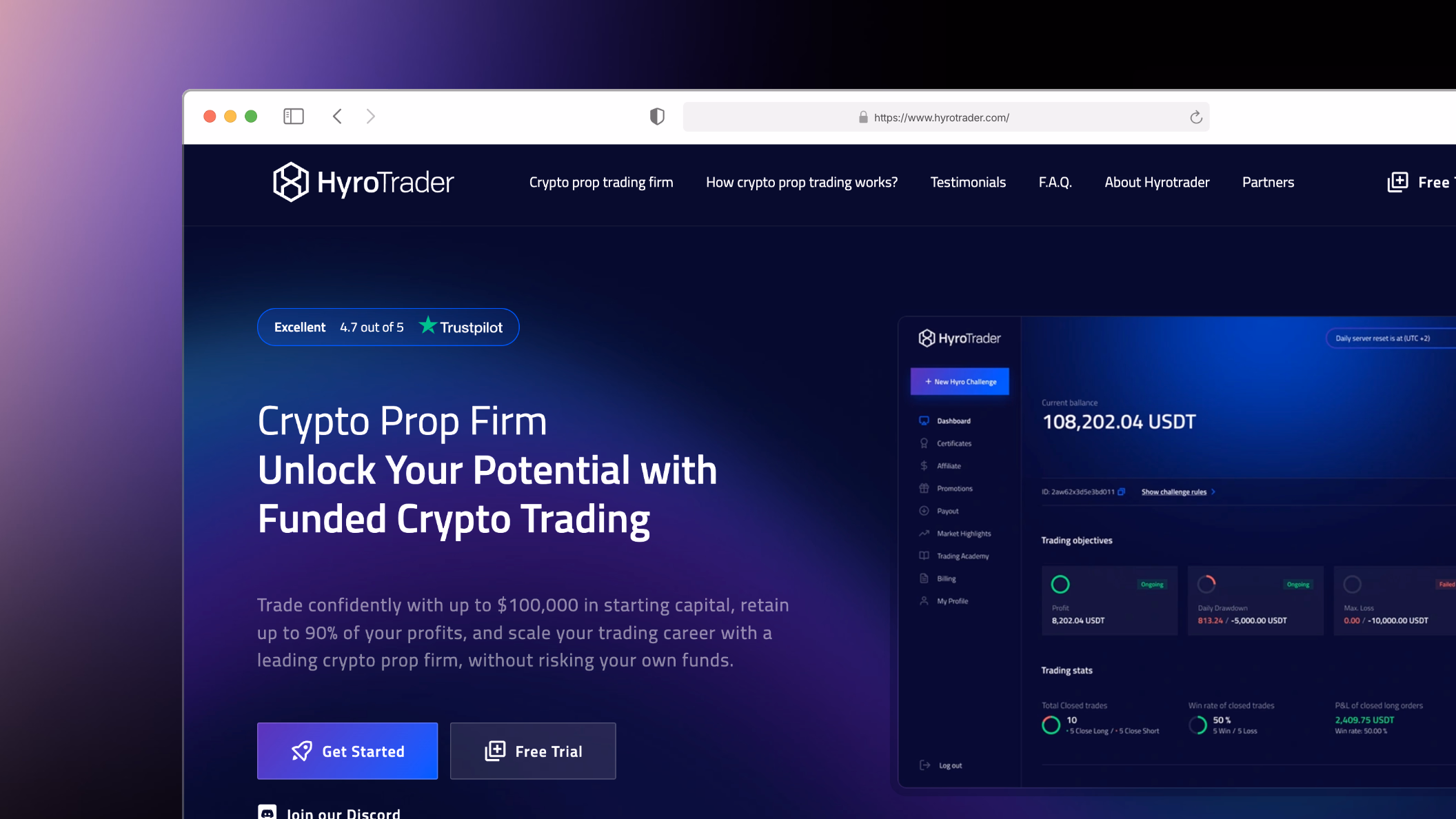 HyroTrader offers one of the most competitive funded account programs for crypto traders. The firm provides robust support and tools to help its funded traders succeed, making it a top choice for those seeking a day trading funded account in the cryptocurrency market. With features like high profit splits, loss protection, and a focus on trader development, HyroTrader has quickly become a leader among prop trading firms.