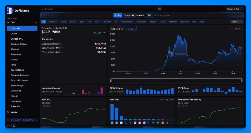- DeFiLlama tracks total value locked (TVL) across protocols and chains. A rising TVL in a pool can signal safety in numbers, while a plummeting TVL might warn of exits ahead. (DeFi’s TVL hit $170B in late 2021, but markets ebb and flow – following these shifts can inform when to enter or exit a strategy.)